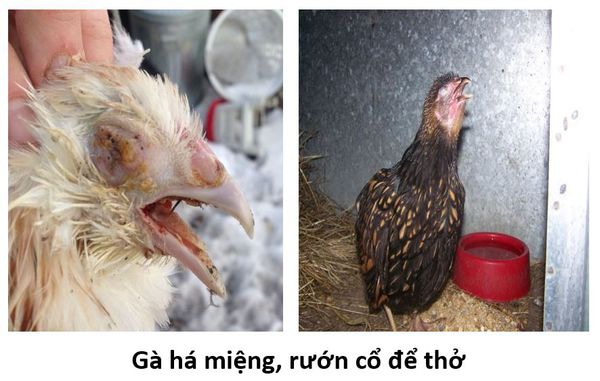 - Khó thở trầm trọng: Gà phải há mồm để thở, nhịp thở nhanh, mạnh, phần bụng phập phồng rõ rệt.
